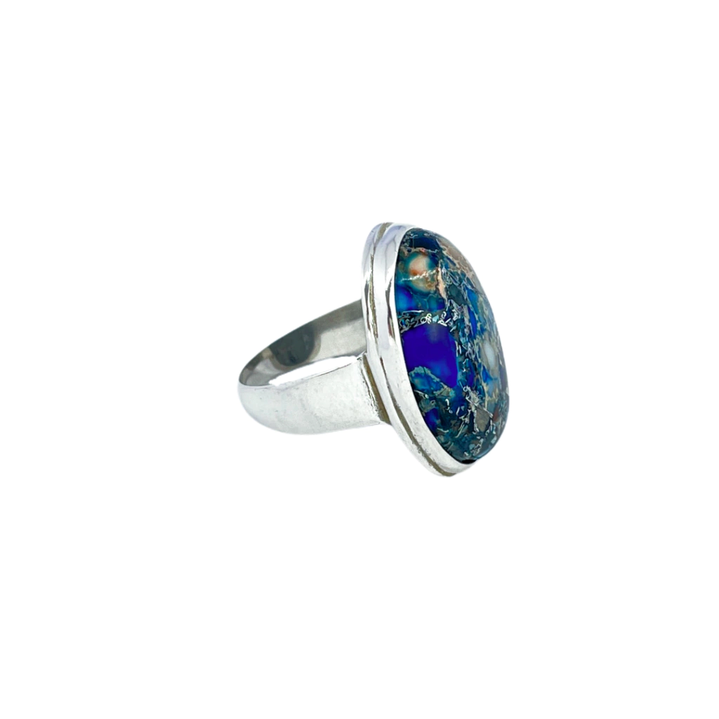 Descubra a sofisticação do Anel Prata 925 Azurita Natural, uma peça que une a pureza da prata com a beleza única da pedra azurita.