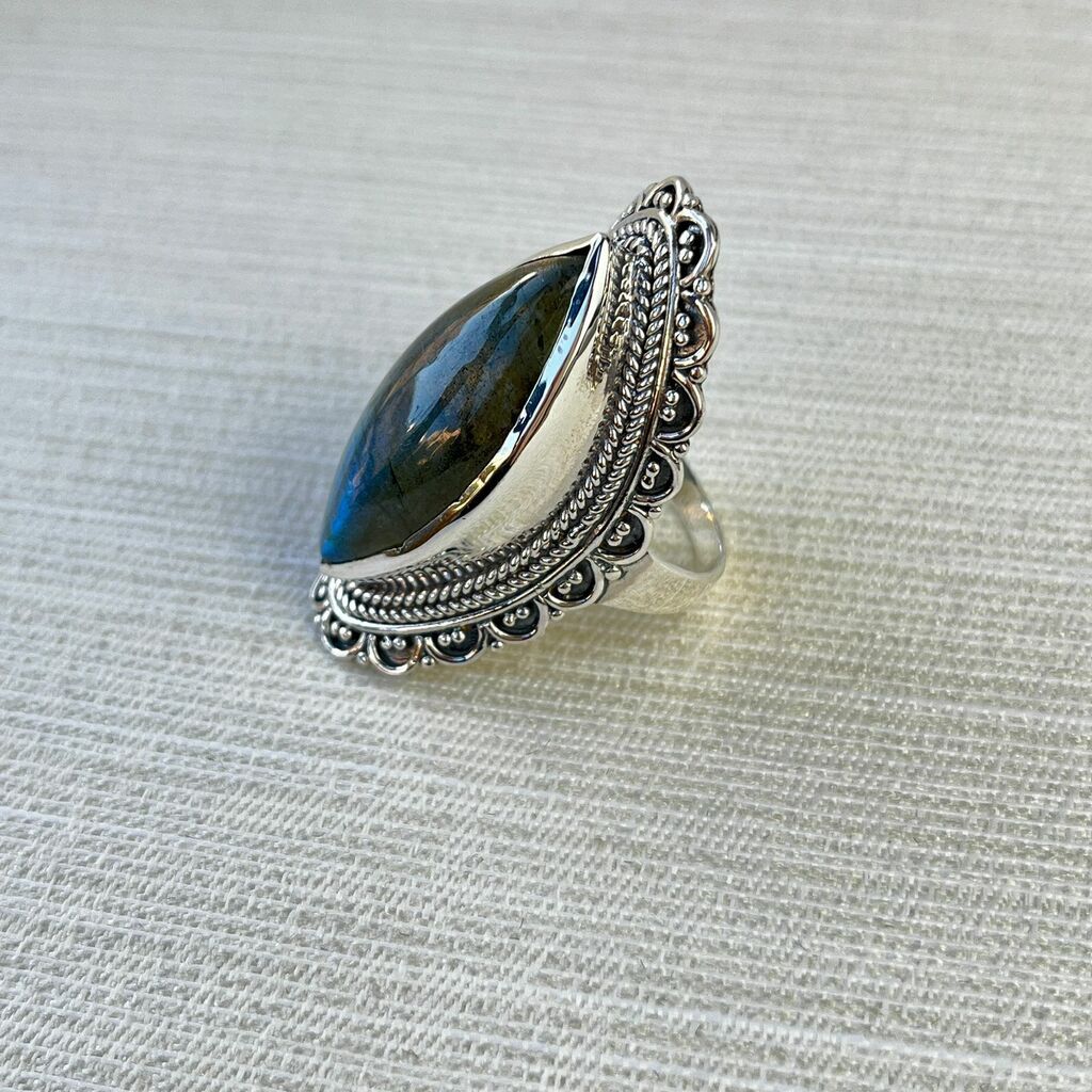 Anel Prata 925 Bali Labradorita Max Renda - Uma joia que exala elegância e charme!