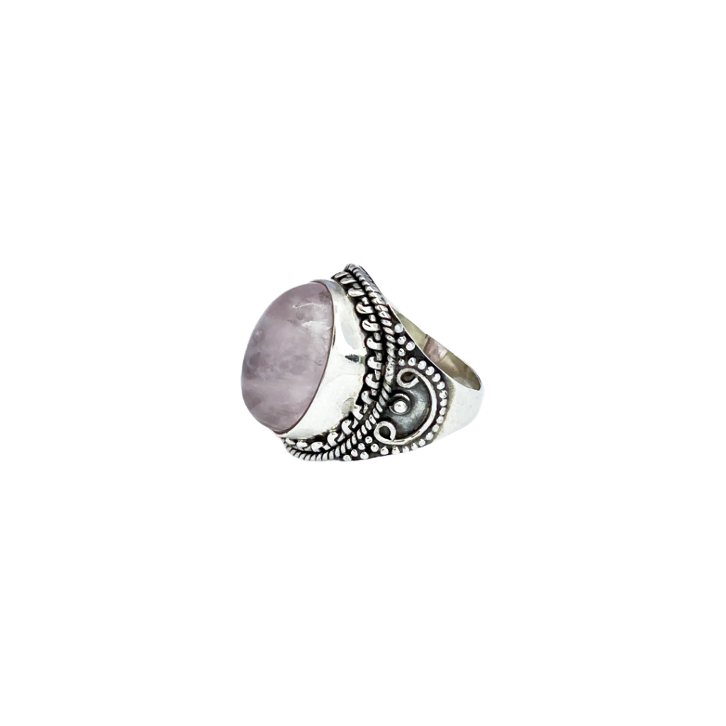 Adquira agora o Anel Prata 925 Bali Quartzo Rosa Pikun e eleve seu estilo com um toque de luxo e delicadeza!