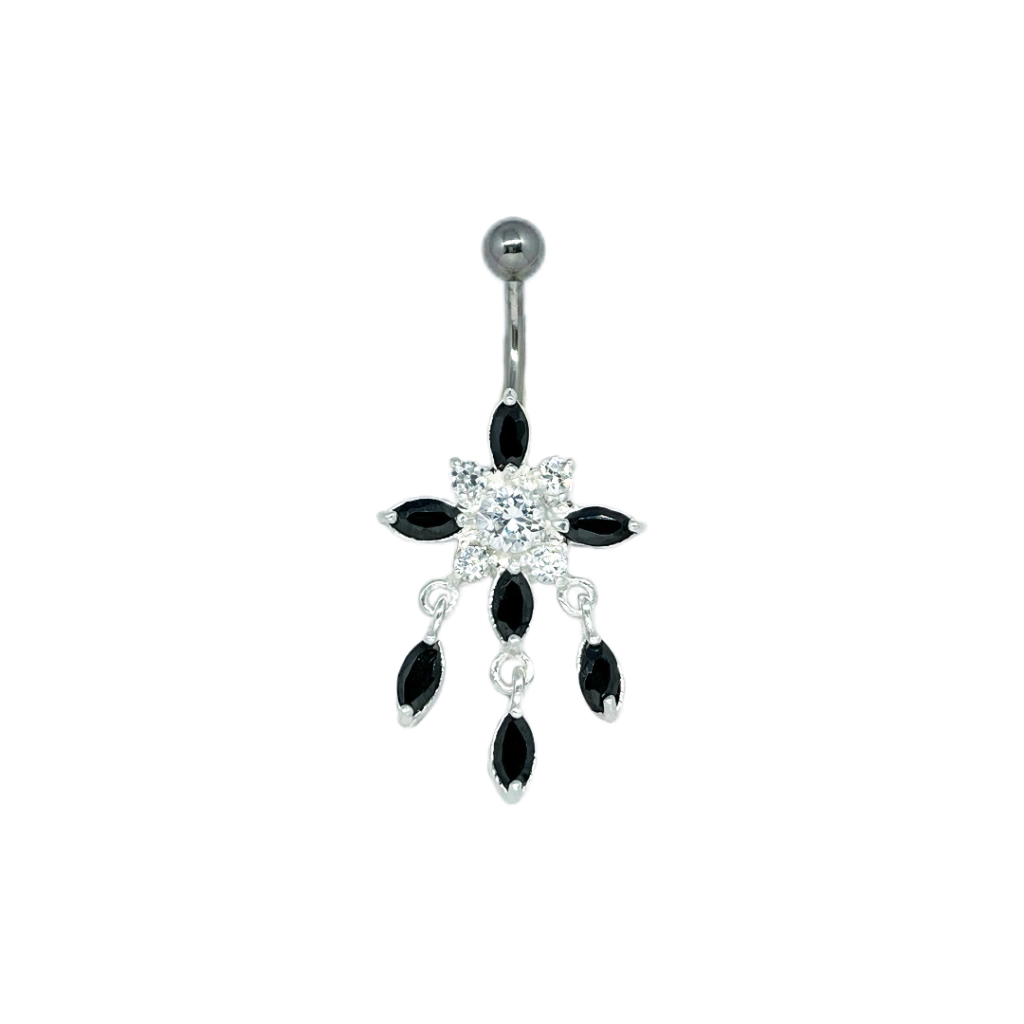 Descubra a sofisticação do Piercing Prata 925 Flor com Zircônias Pretas para Umbigo, uma peça que une delicadeza e modernidade com maestria.