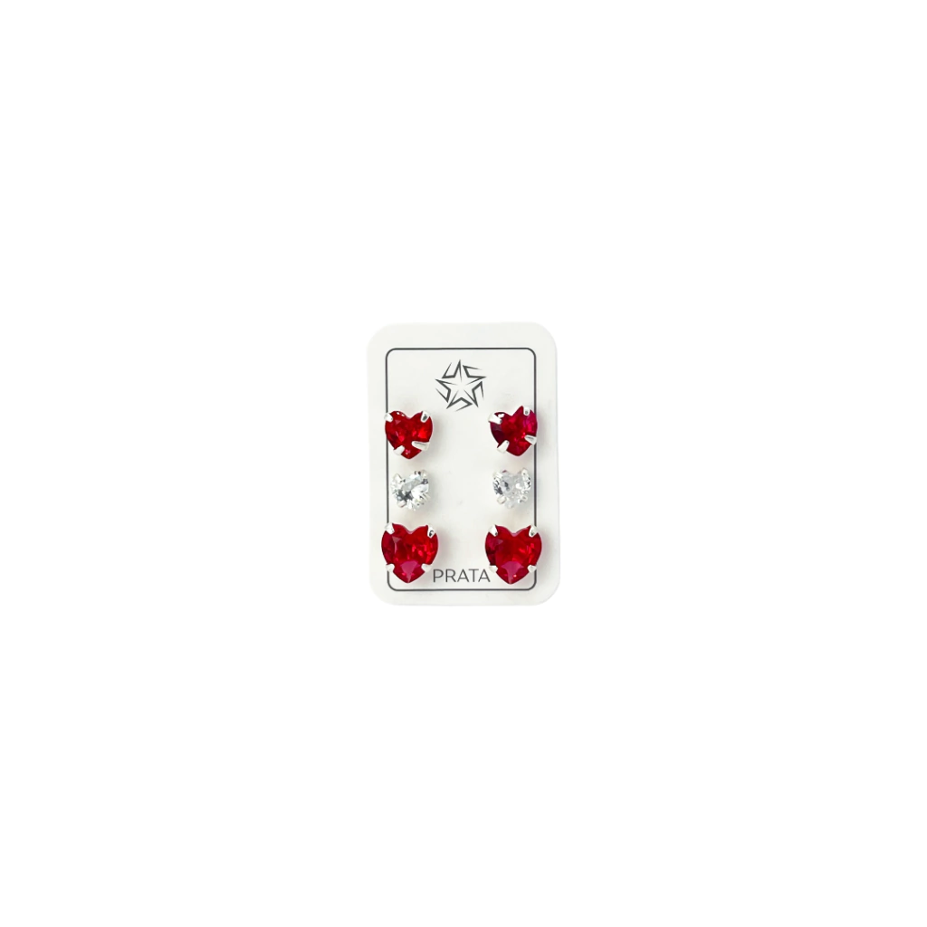 Descubra a delicadeza e o charme do Trio Prata 925 Corações Rosa Cereja e Cristal, uma joia que eleva qualquer visual com sofisticação e leveza.